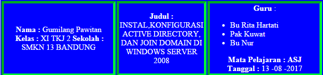 INSTALL, KONFIGURASI ACTIVE DIRECTORY, DAN JOIN DOMAIN DI WINDOWS SERVER 2008
